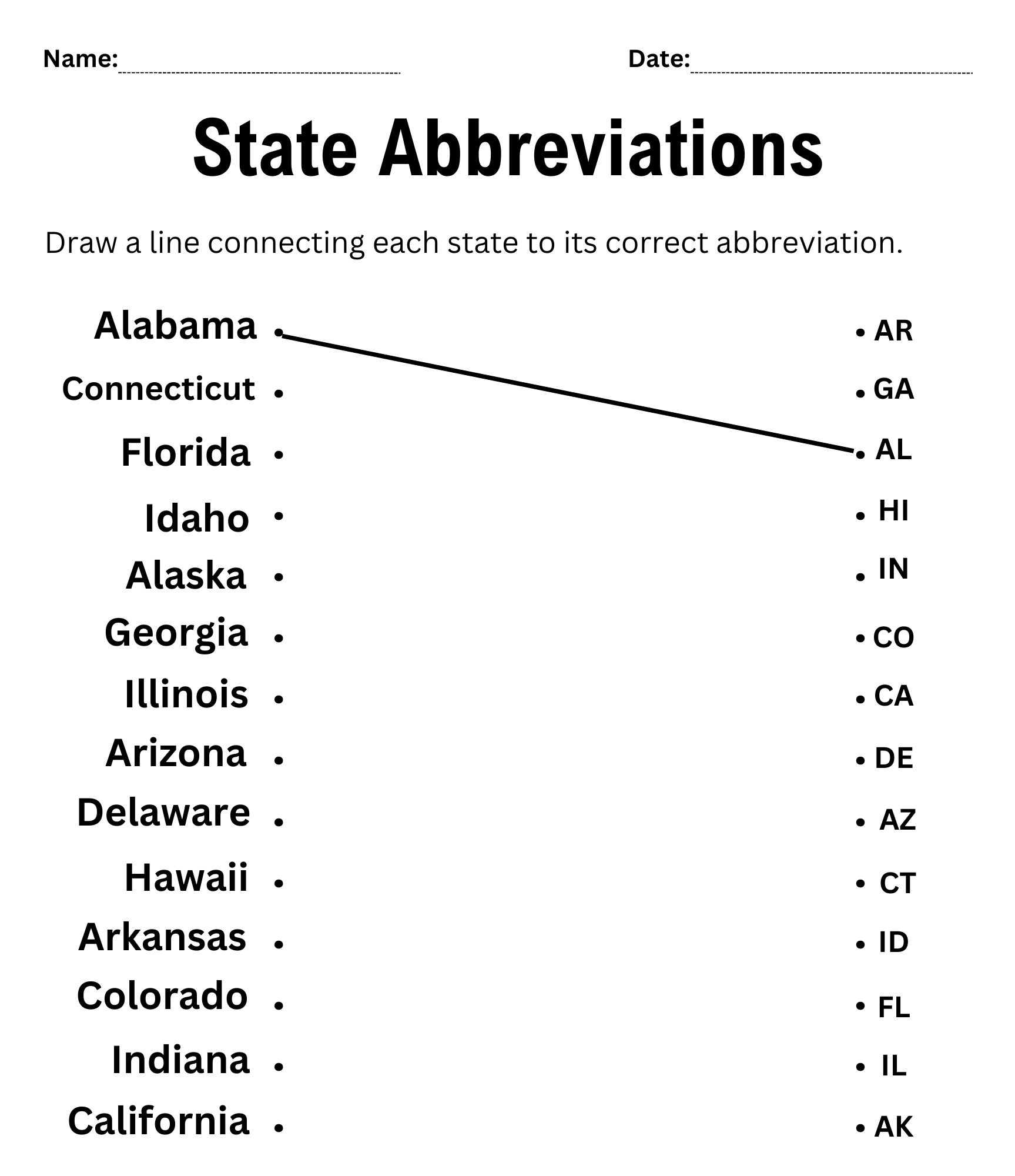 50 States Alphabetical Order Worksheet