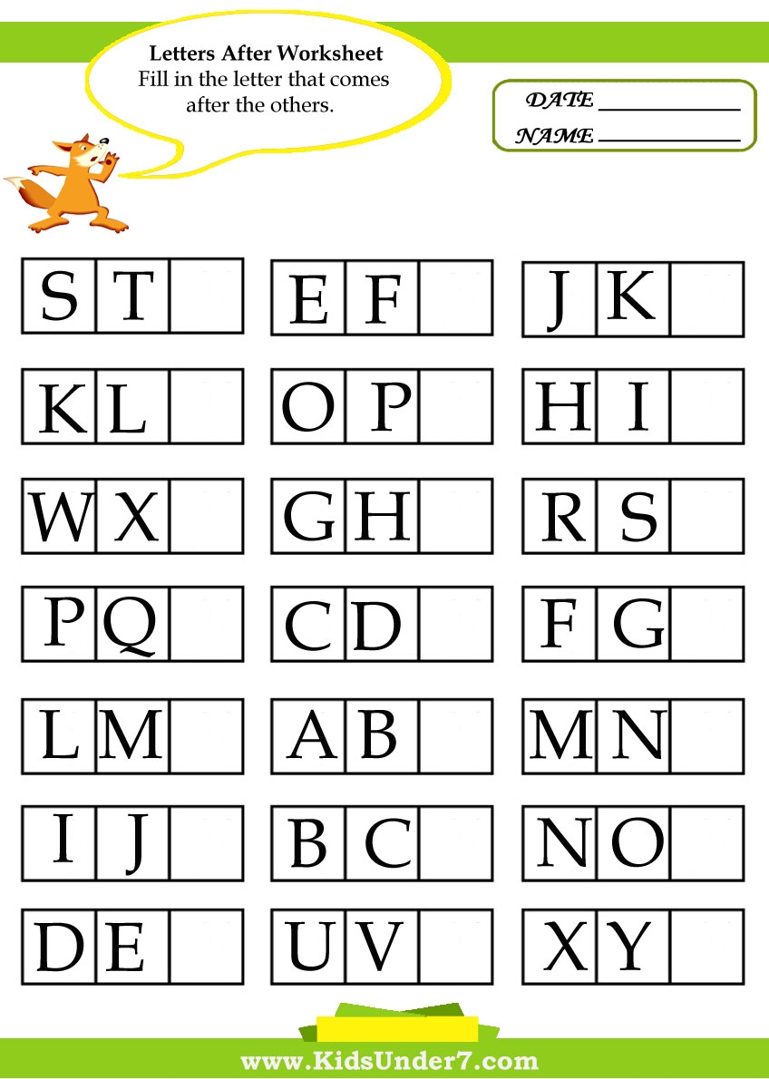 These worksheets typically feature a series of letters with a missing letter that your child needs to fill in. By identifying the letter that comes before or after the given letter, your child can practice their alphabet skills in an interactive way.