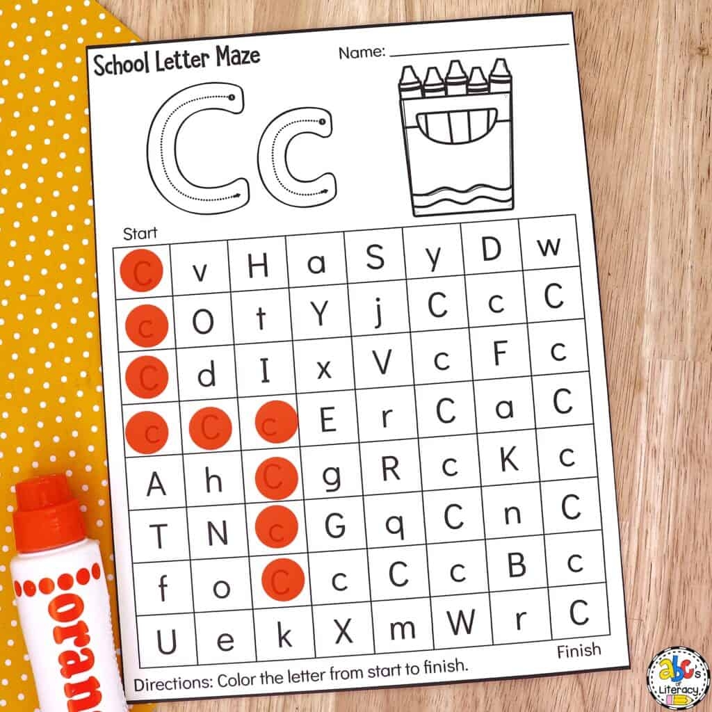 Back To School Letter Maze Worksheets