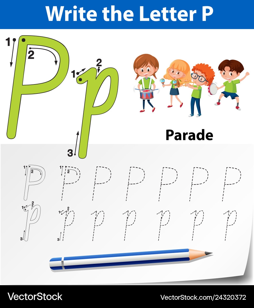 Letter P Tracing Alphabet Worksheets Royalty Free Vector
