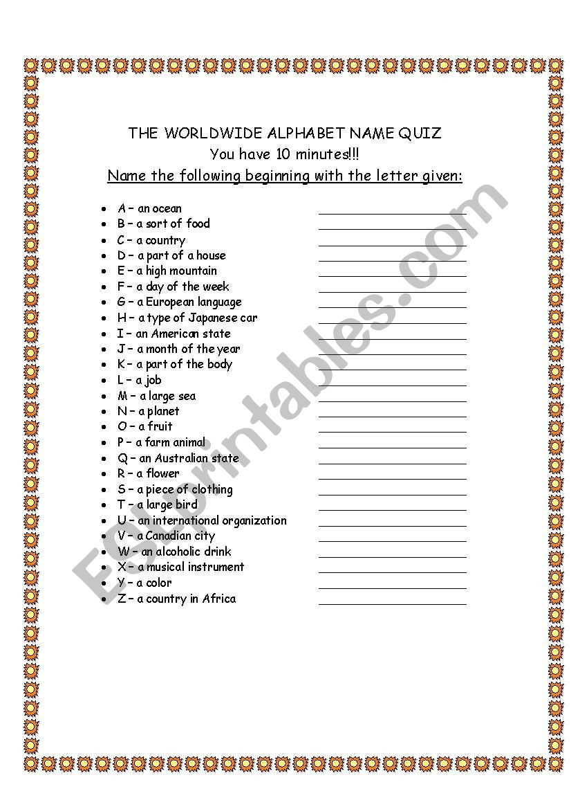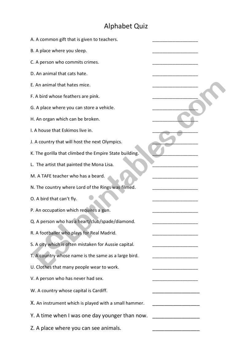 Alphabet Quiz ESL Worksheet By Gjoanna