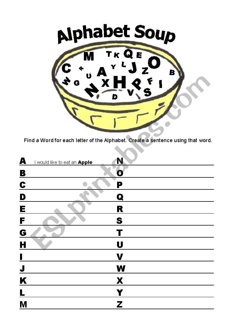 Alphabet Soup ESL Worksheet By JeremyHillaryBoobPhd