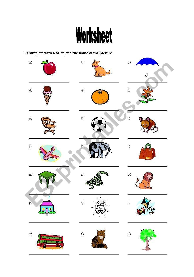 English Worksheets Alphabet Vocabulary