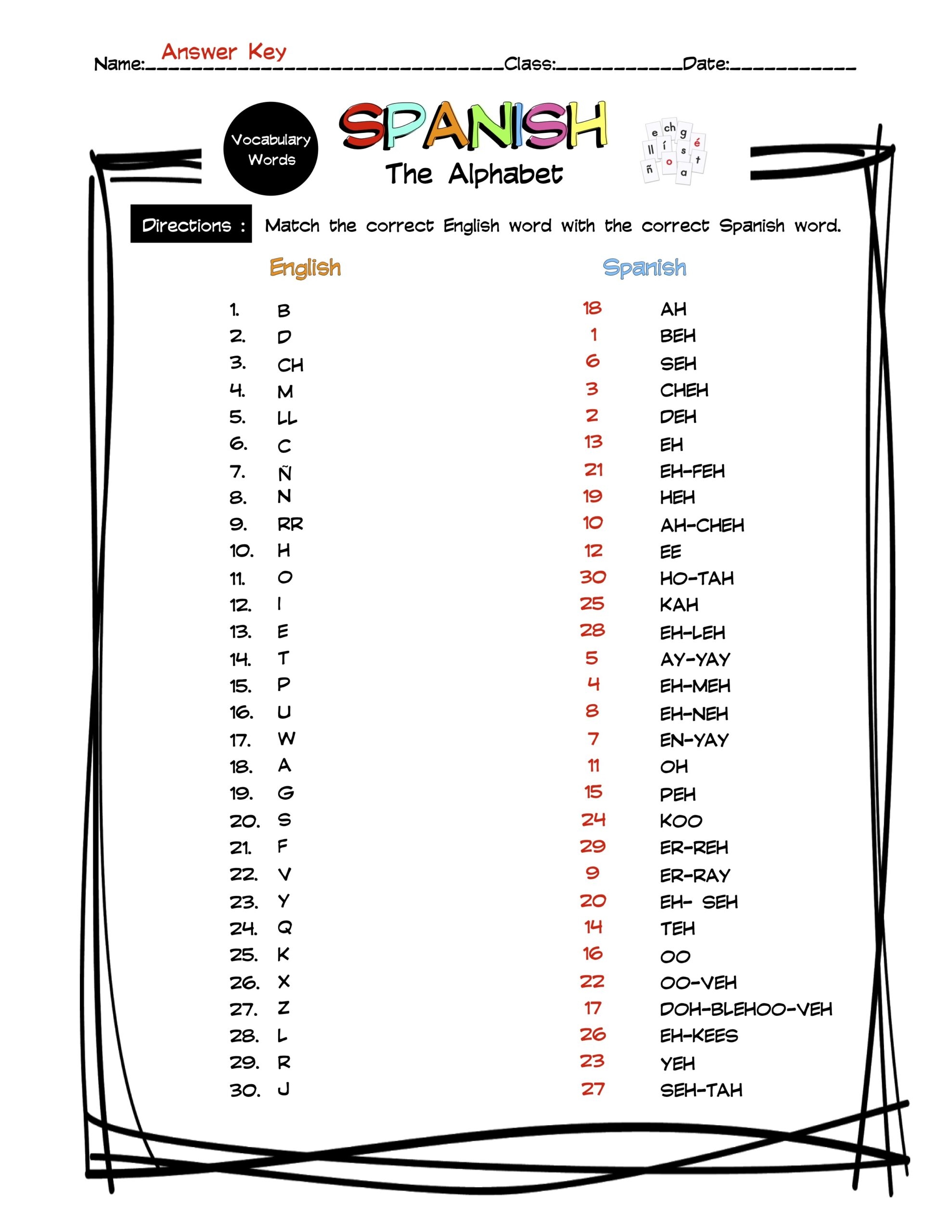 Spanish Alphabet Vocabulary Word Search Worksheet U0026 Answer Key Made By Teachers
