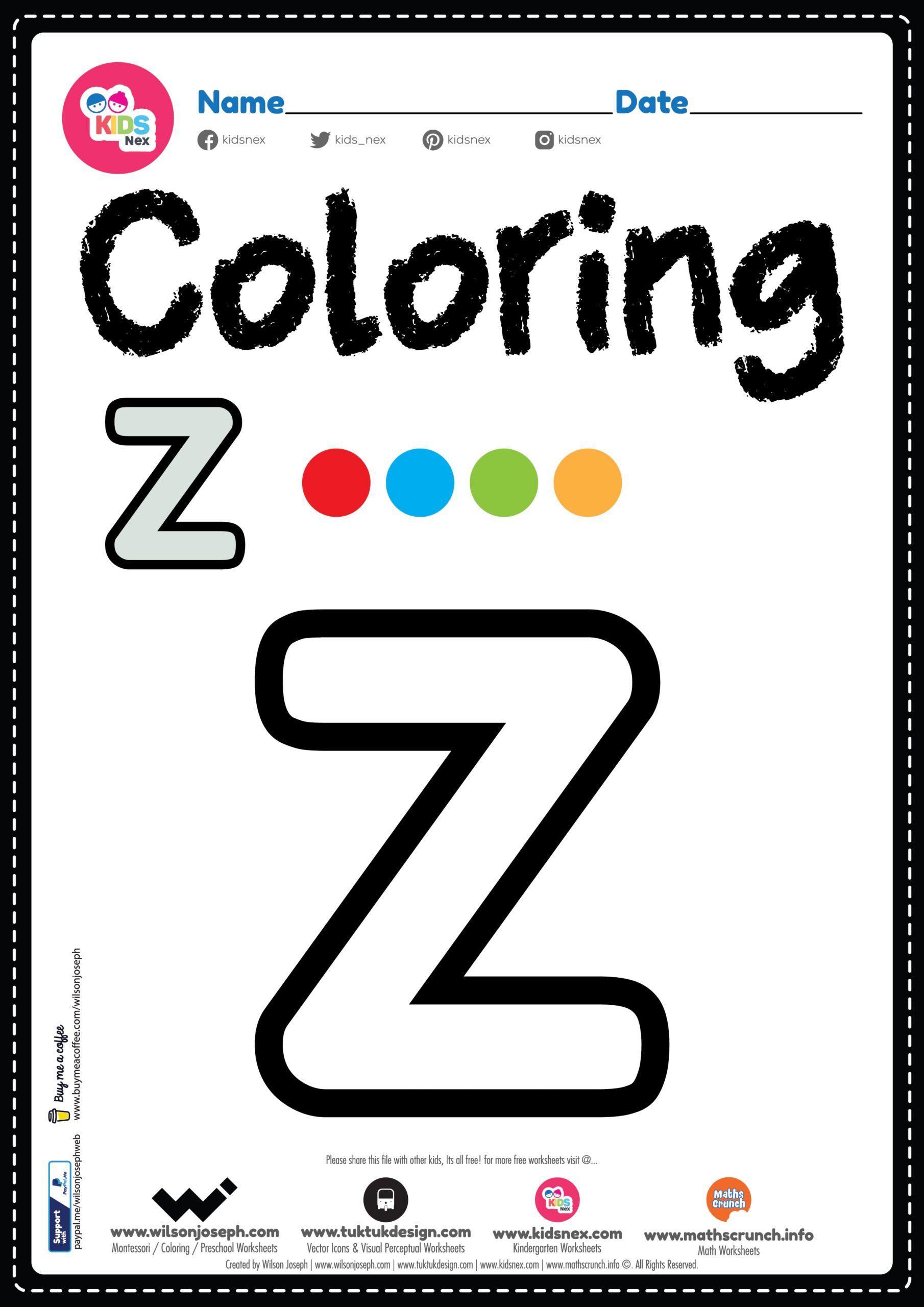 Letter Z Alphabet Coloring Page Worksheet Free Printable PDF
