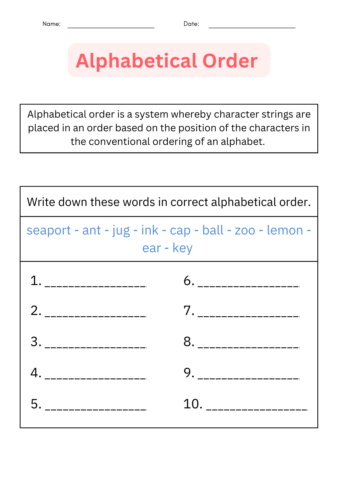 Alphabetical Order Worksheets Create With Storyboard That
