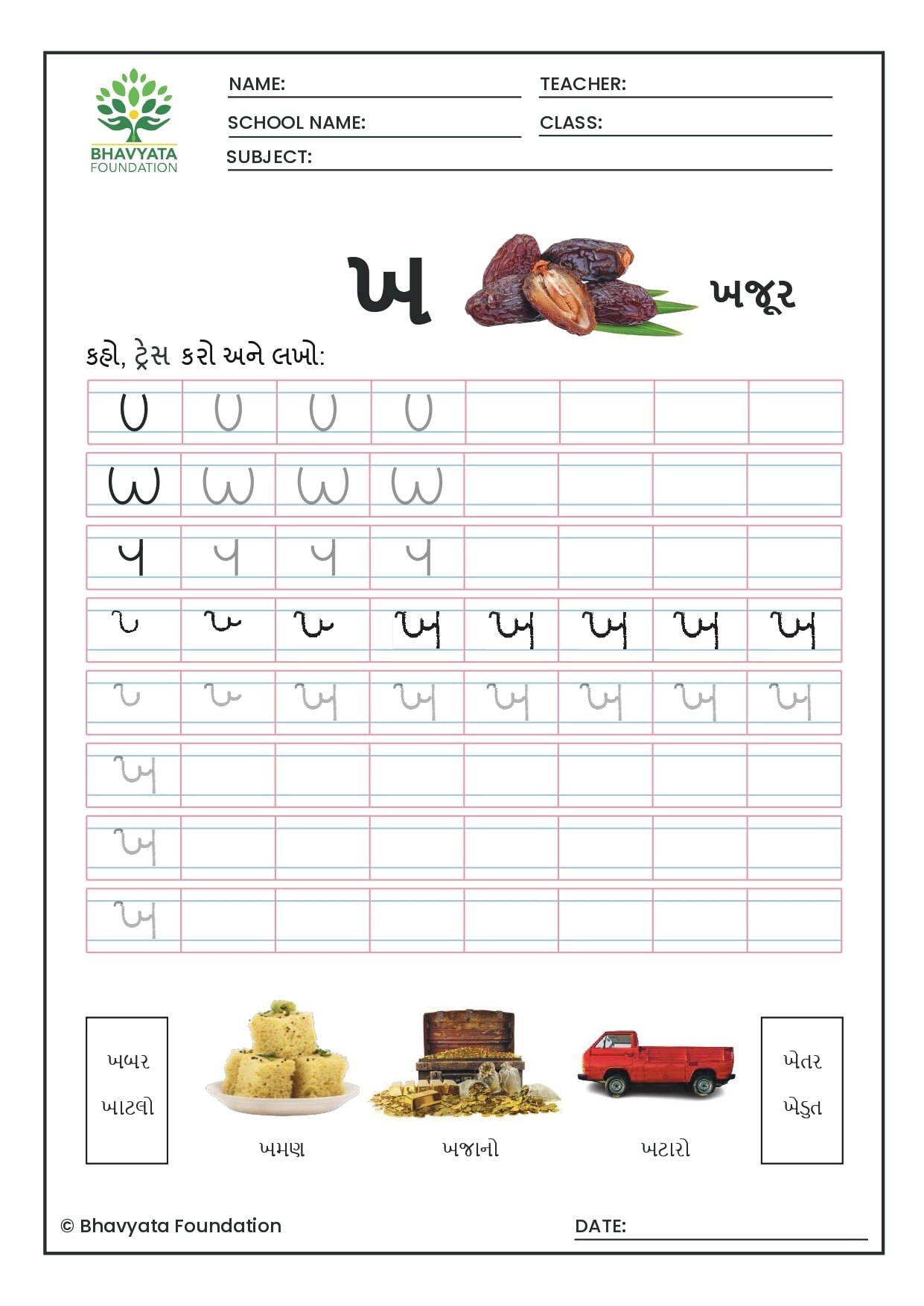 Beginner Gujarati Alphabet Practice Worksheet