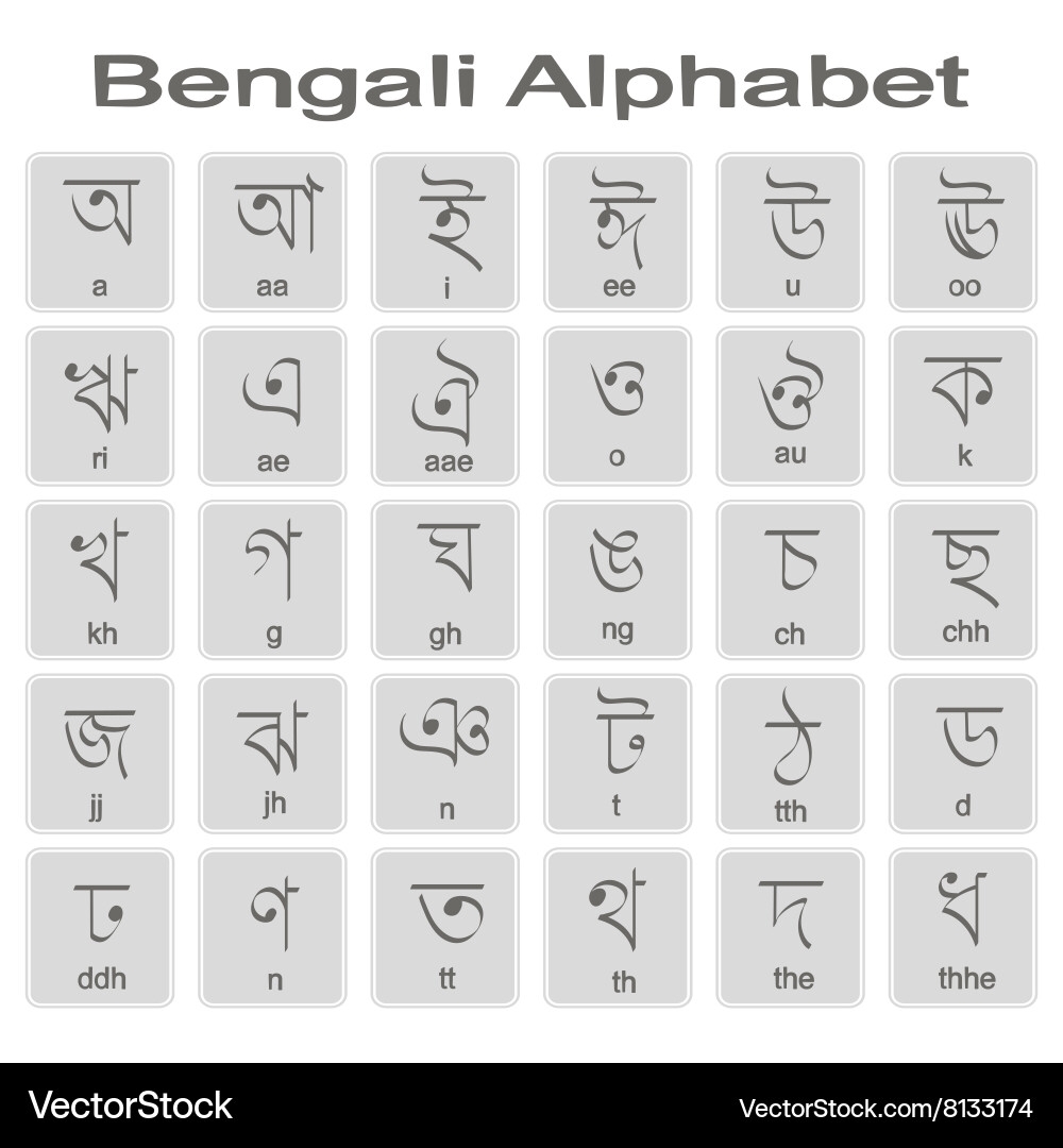 Set Of Monochrome Icons With Bengali Alphabet Vector Image