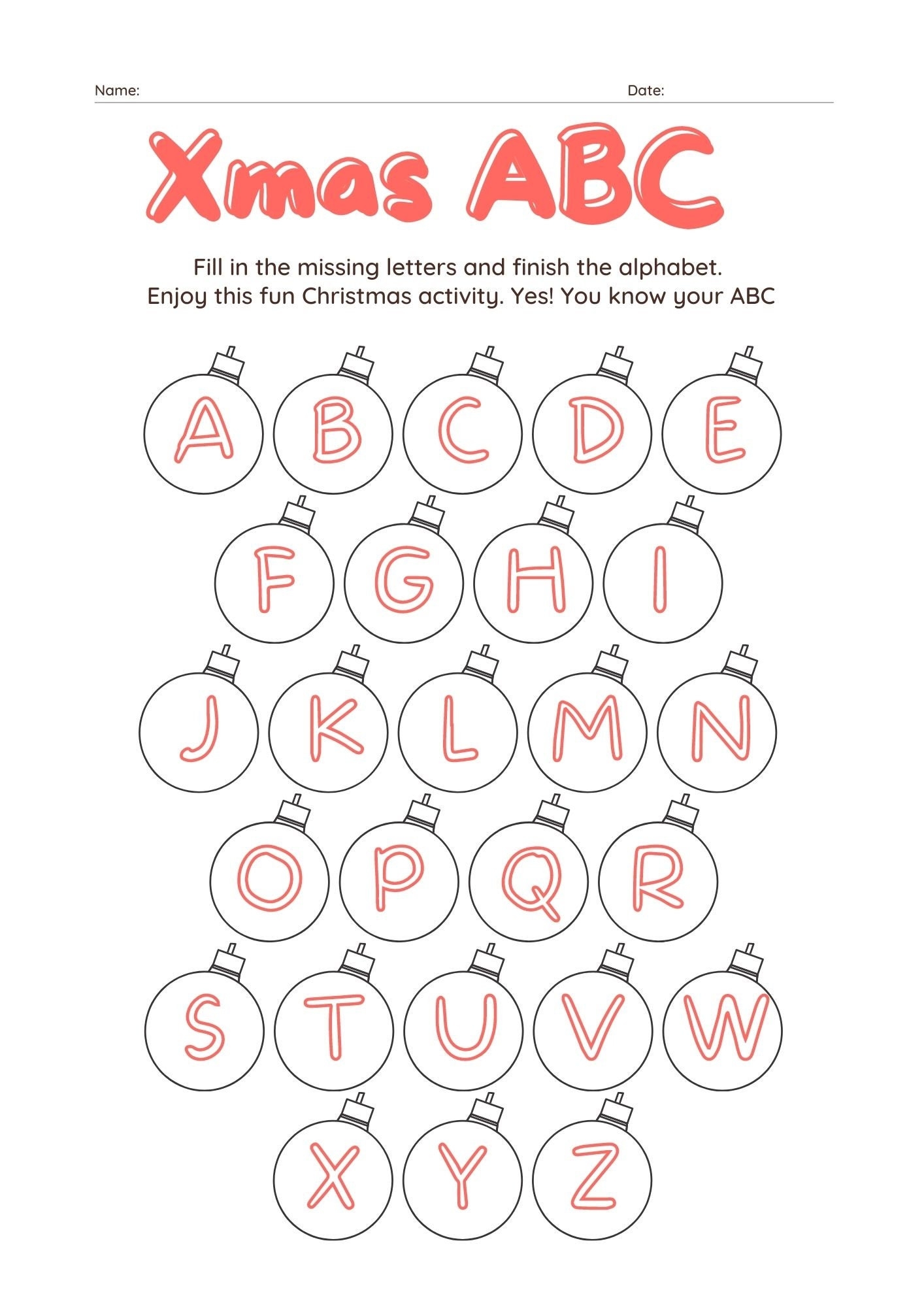 4 Page Christmas ABC Worksheet Holiday Party Game Christmas Printable Game Christmas Home Party Game For Kids Game Virtual Etsy