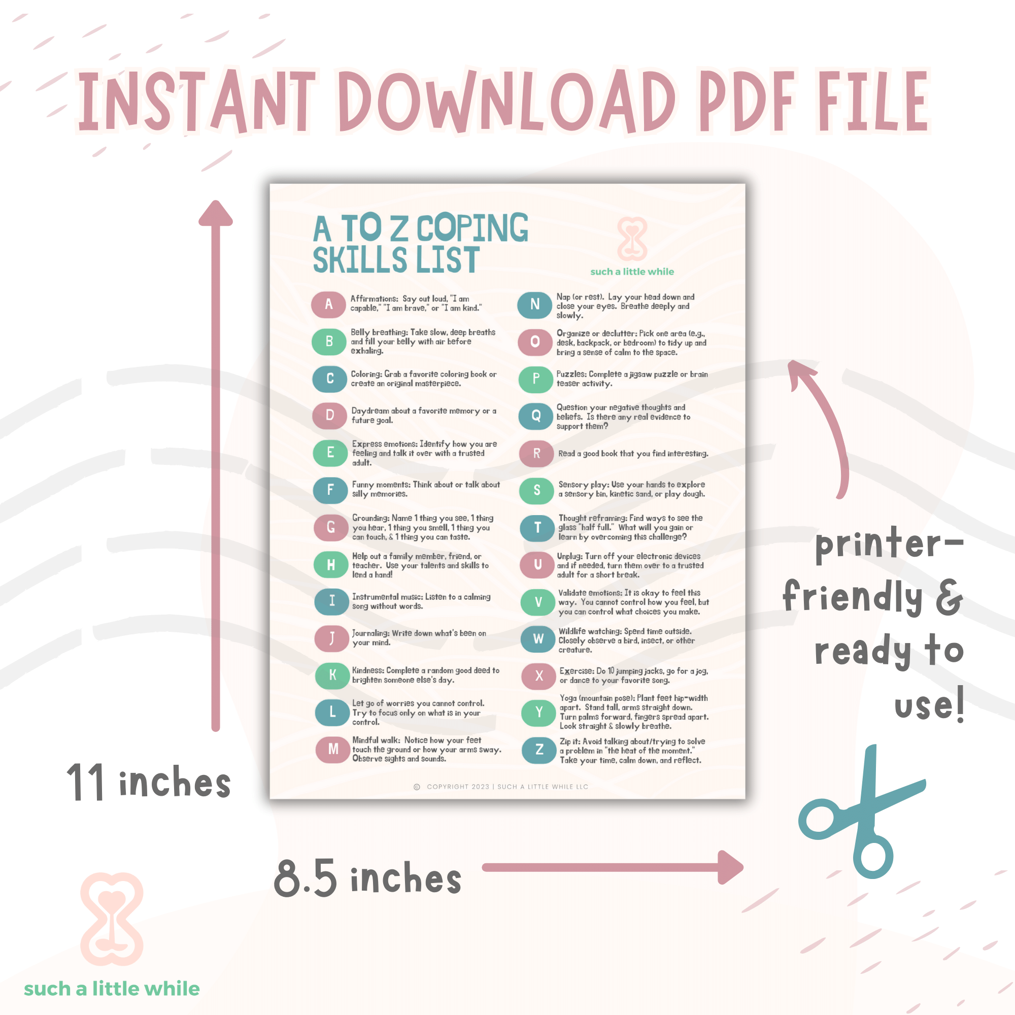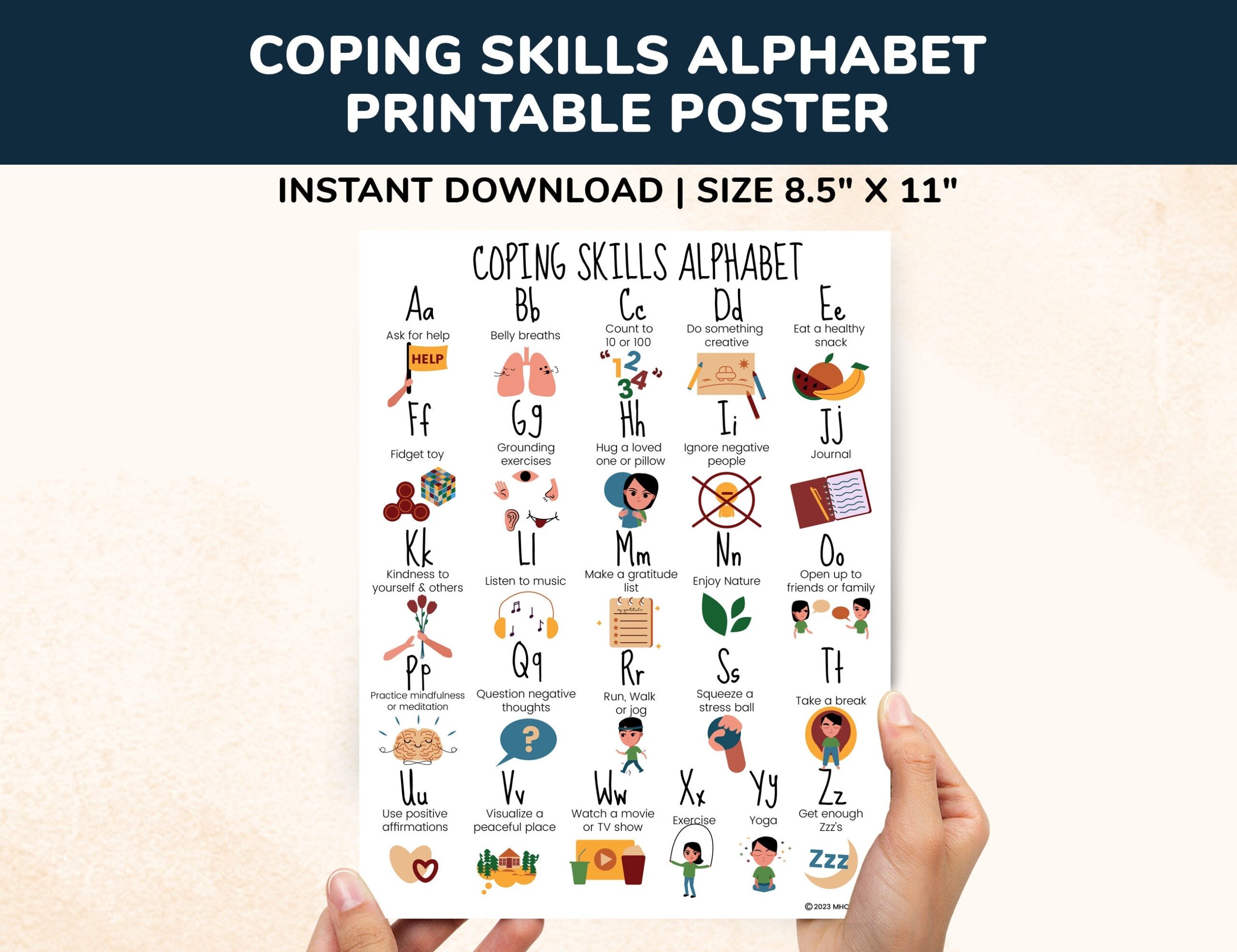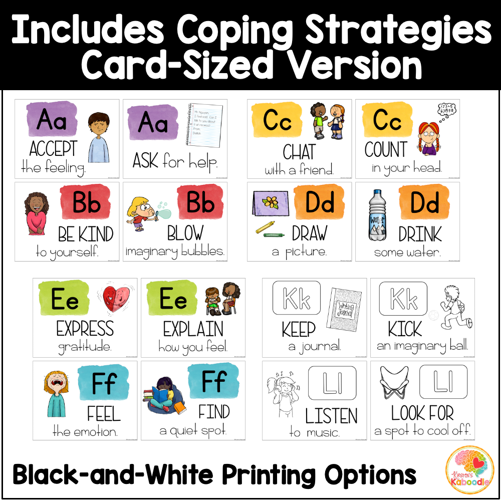 Coping Skills Alphabet Printable Therapy Posters Kids Teens Calm Down Corner School Counseling Self Regulation Worksheets Classroom CBT PDF