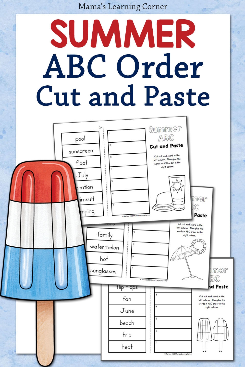 Summer ABC Order Cut And Paste Worksheets Mamas Learning Corner