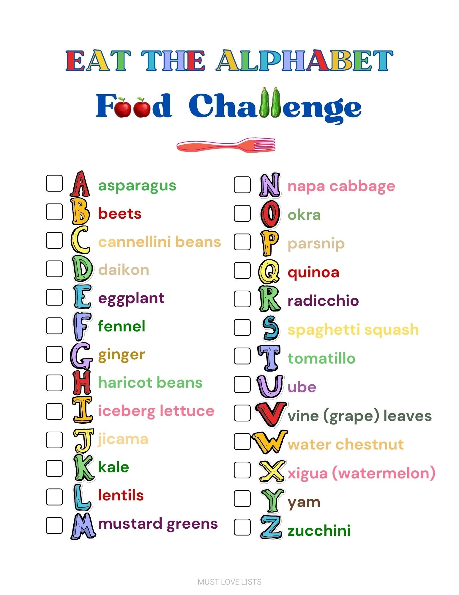 Eat The Alphabet Healthy Food Challenge Eat Your Veggies Kids