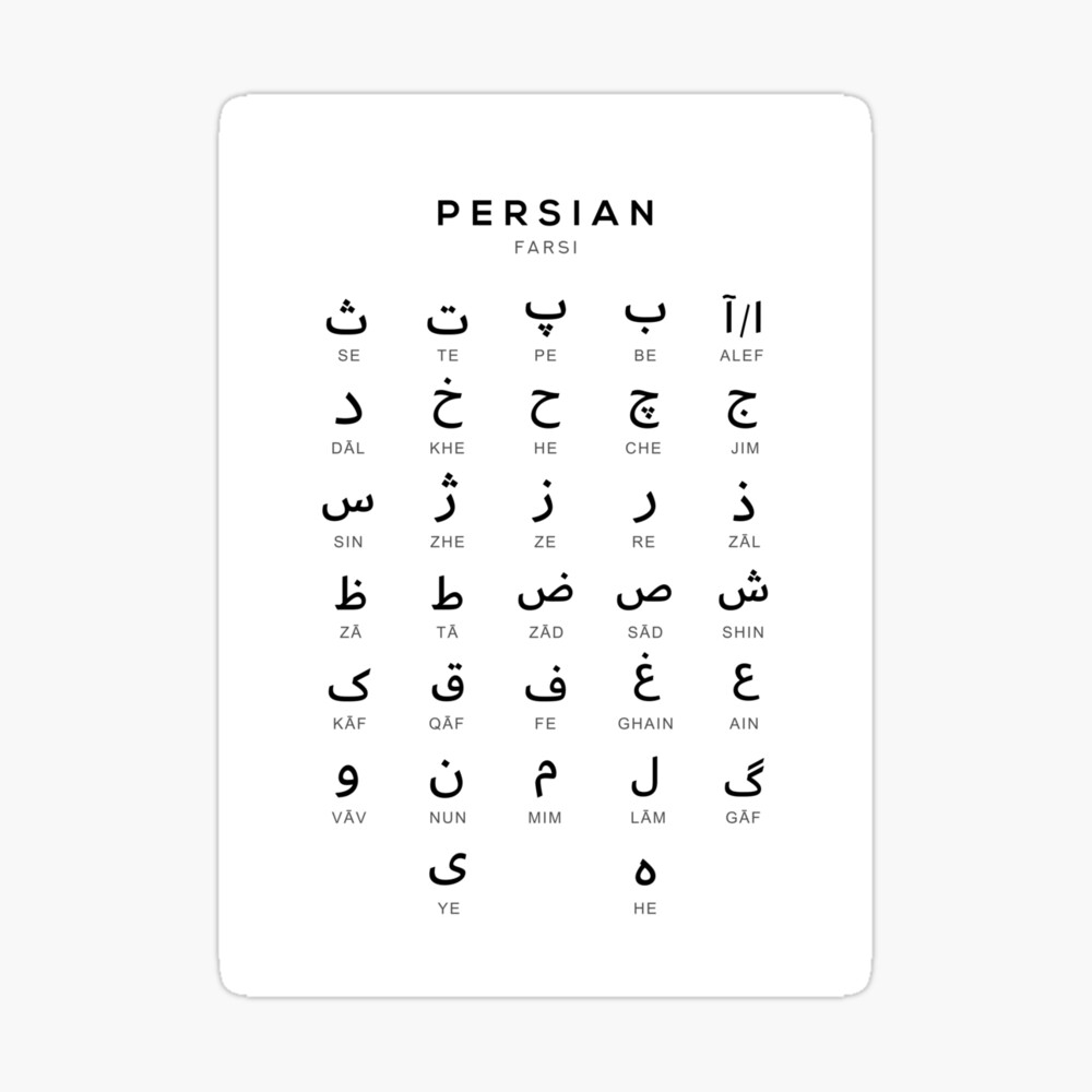 Persian Alphabet Chart Farsi Language Chart White Poster