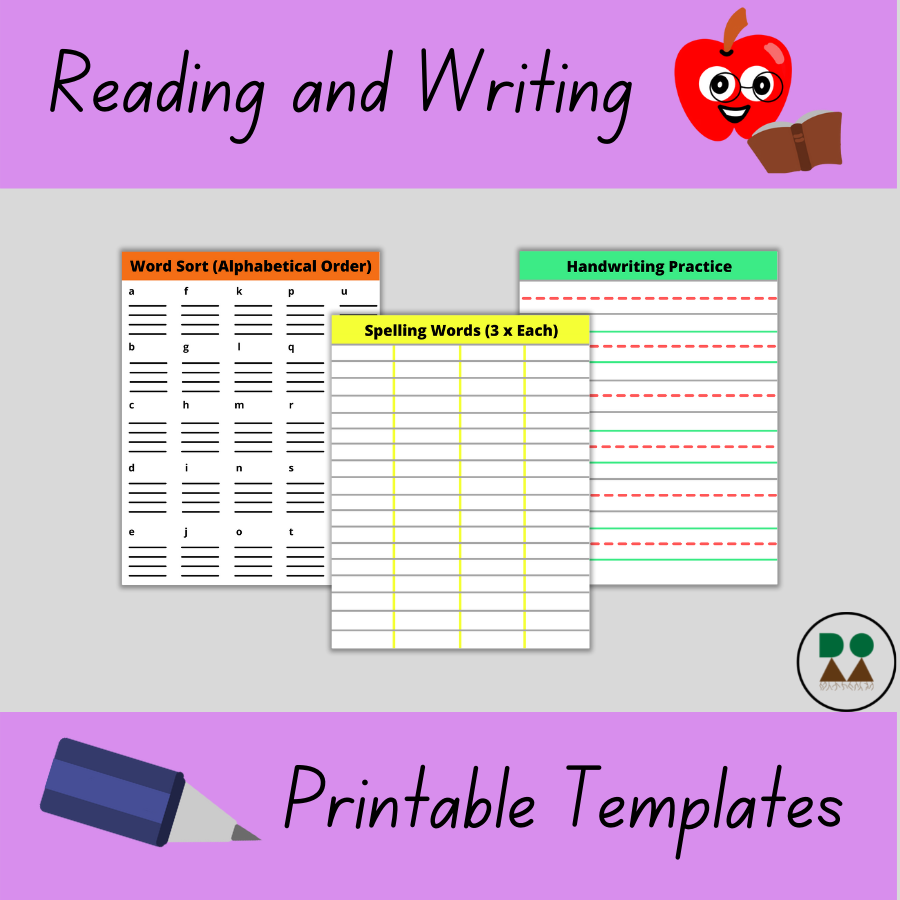 Spelling Words Handwriting And Word Sort Templates 3 Sheets