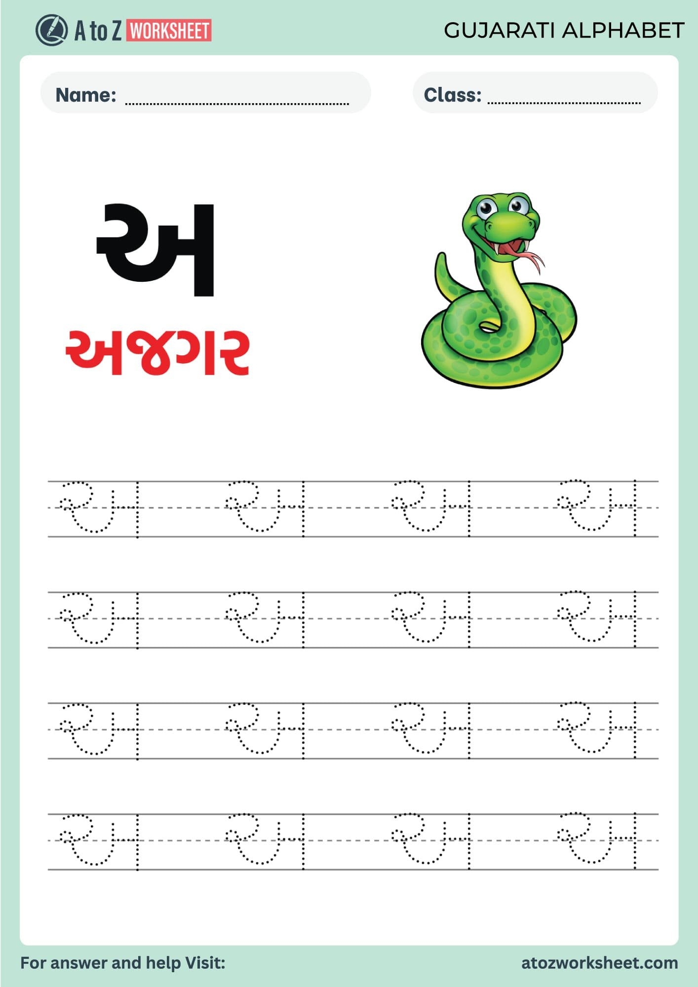 Gujarati Alphabet Tracing Worksheet PDF A To Z Worksheet