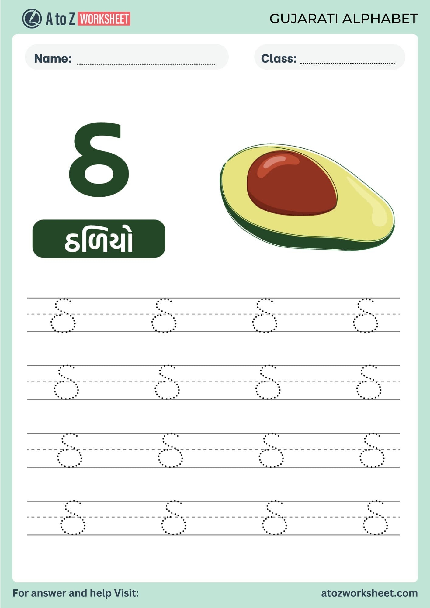Tracing Gujarati Alphabet Practice Worksheet