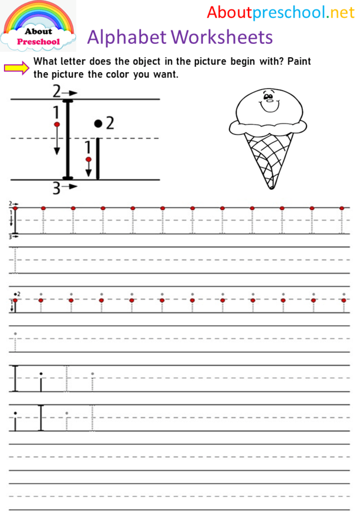 I Alphabet Worksheet