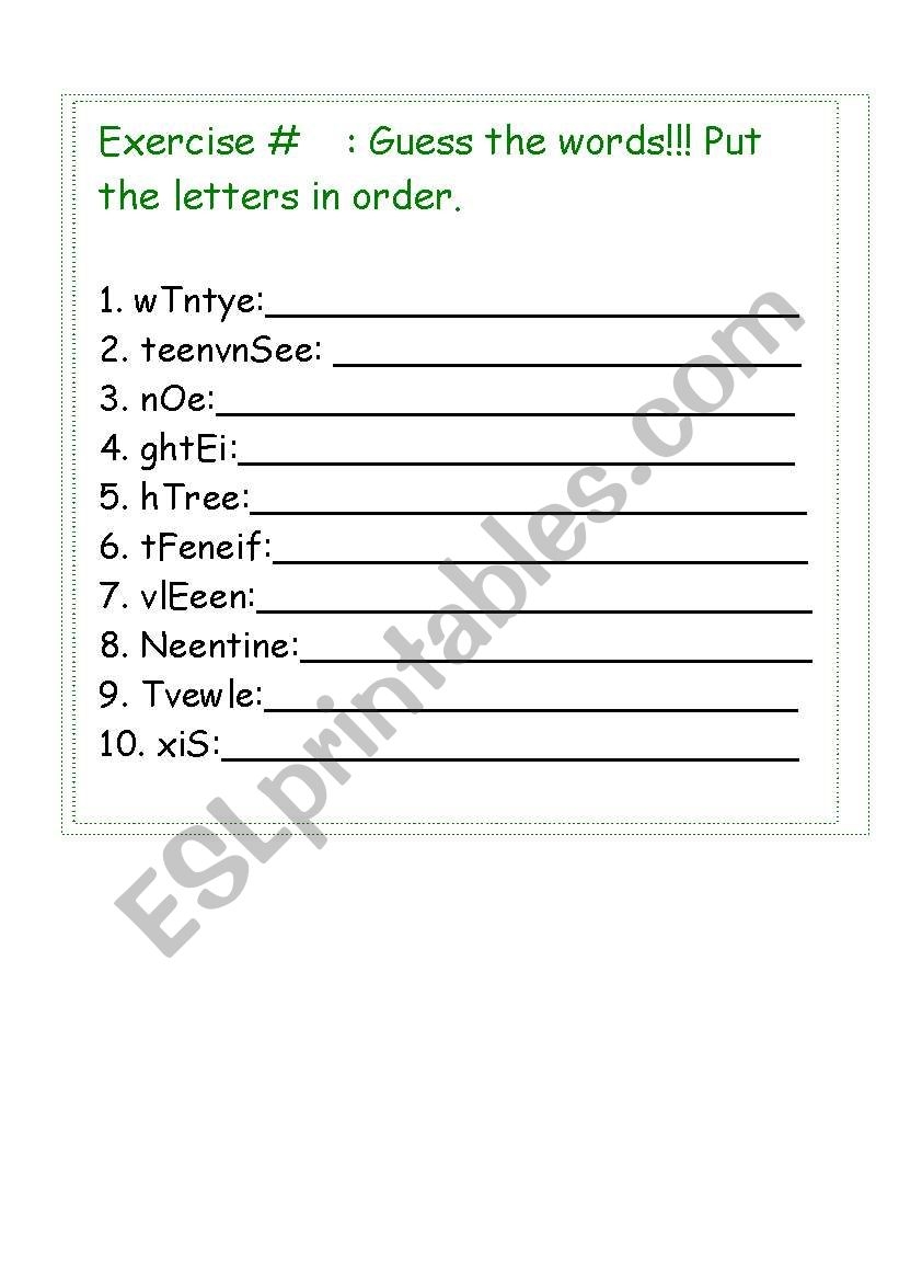 English Worksheets Jumbled Letters Numbers