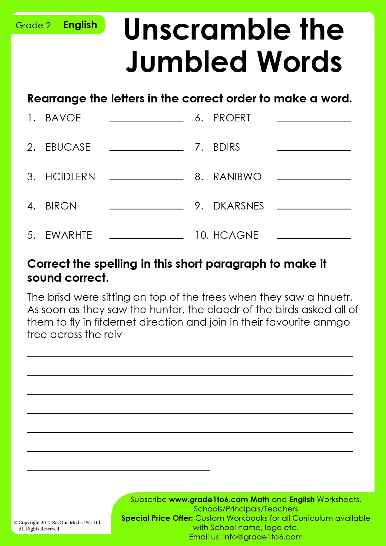 Jumbled Words For Class 2 Worksheet Grade1to6