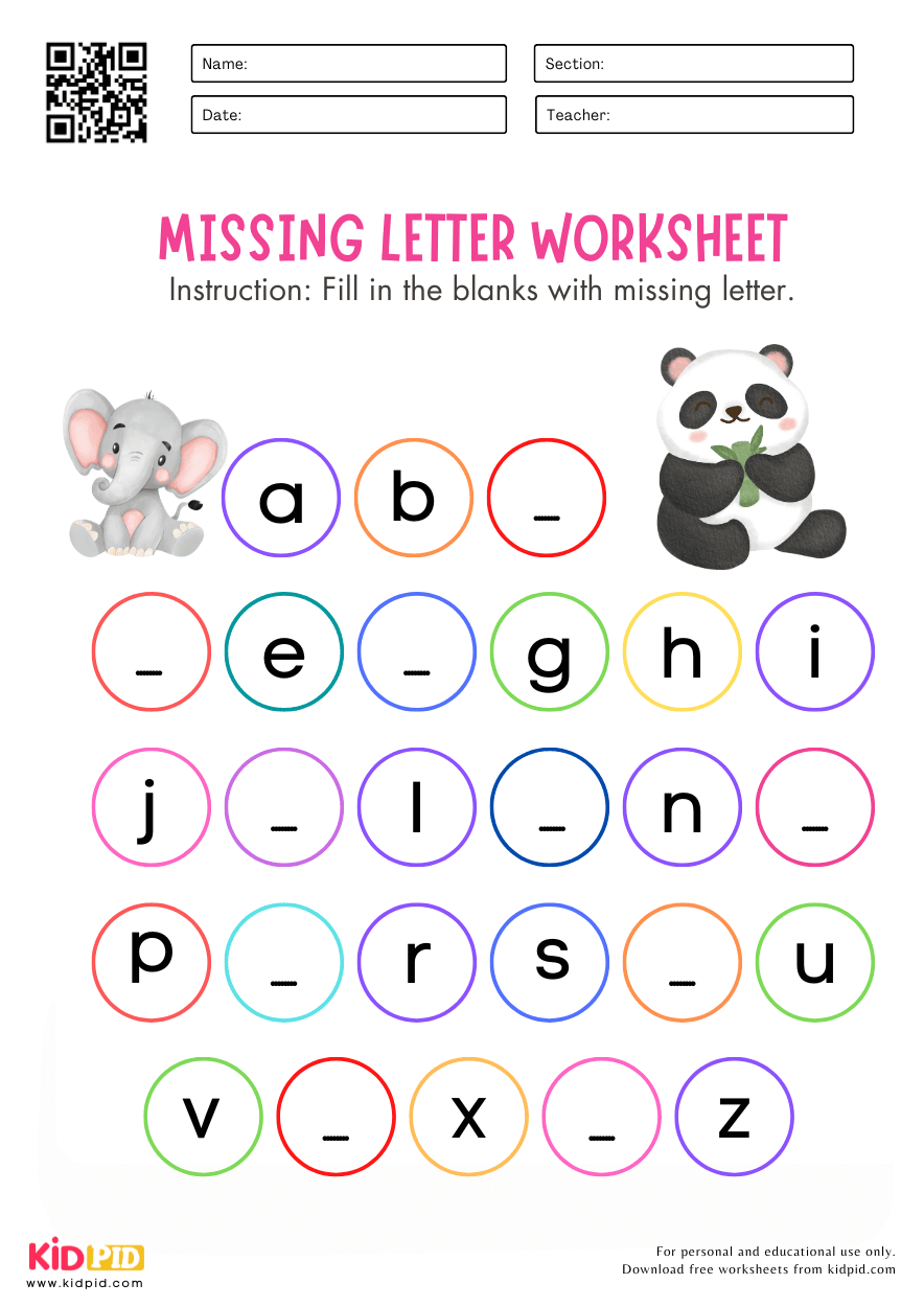 Our missing alphabet worksheets are designed to engage and challenge young learners. Each worksheet features a series of letters with one or more missing, prompting children to fill in the blanks and complete the alphabet sequence. This not only reinforces letter recognition but also improves critical thinking and problem-solving skills.
