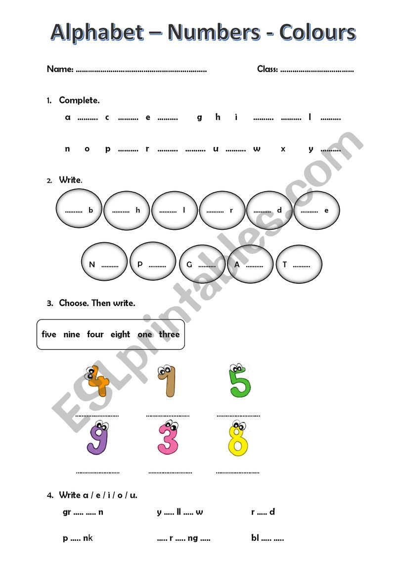 Alphabet Numbers Colours Test ESL Worksheet By Elizabeth gr