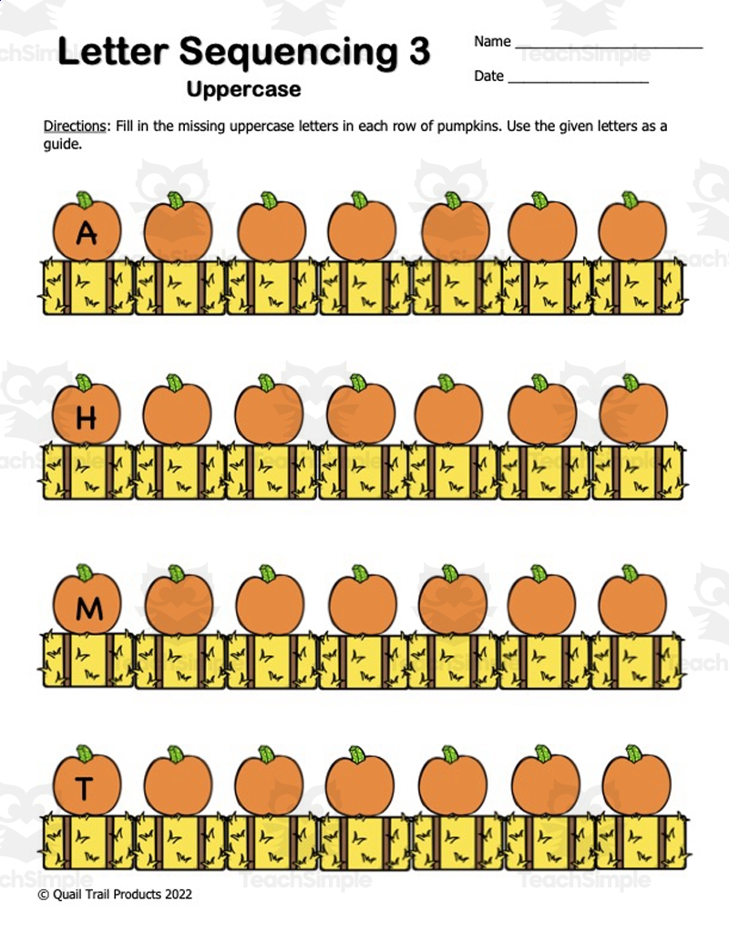 Alphabet Sequencing Worksheets Pumpkin Theme By Teach Simple