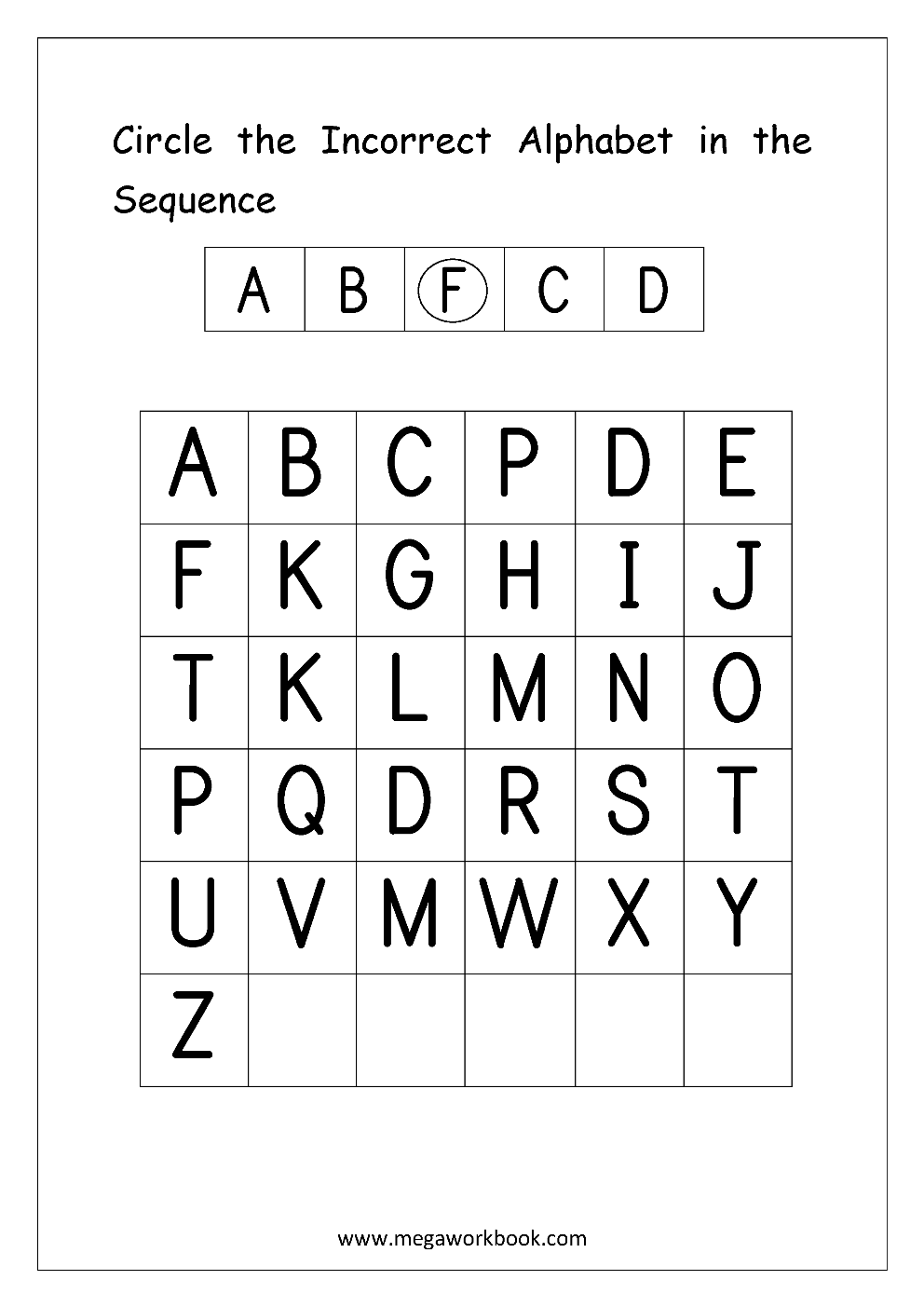 Free English Worksheets Alphabetical Sequence Alphabetical Order Missing Letters MegaWorkbook