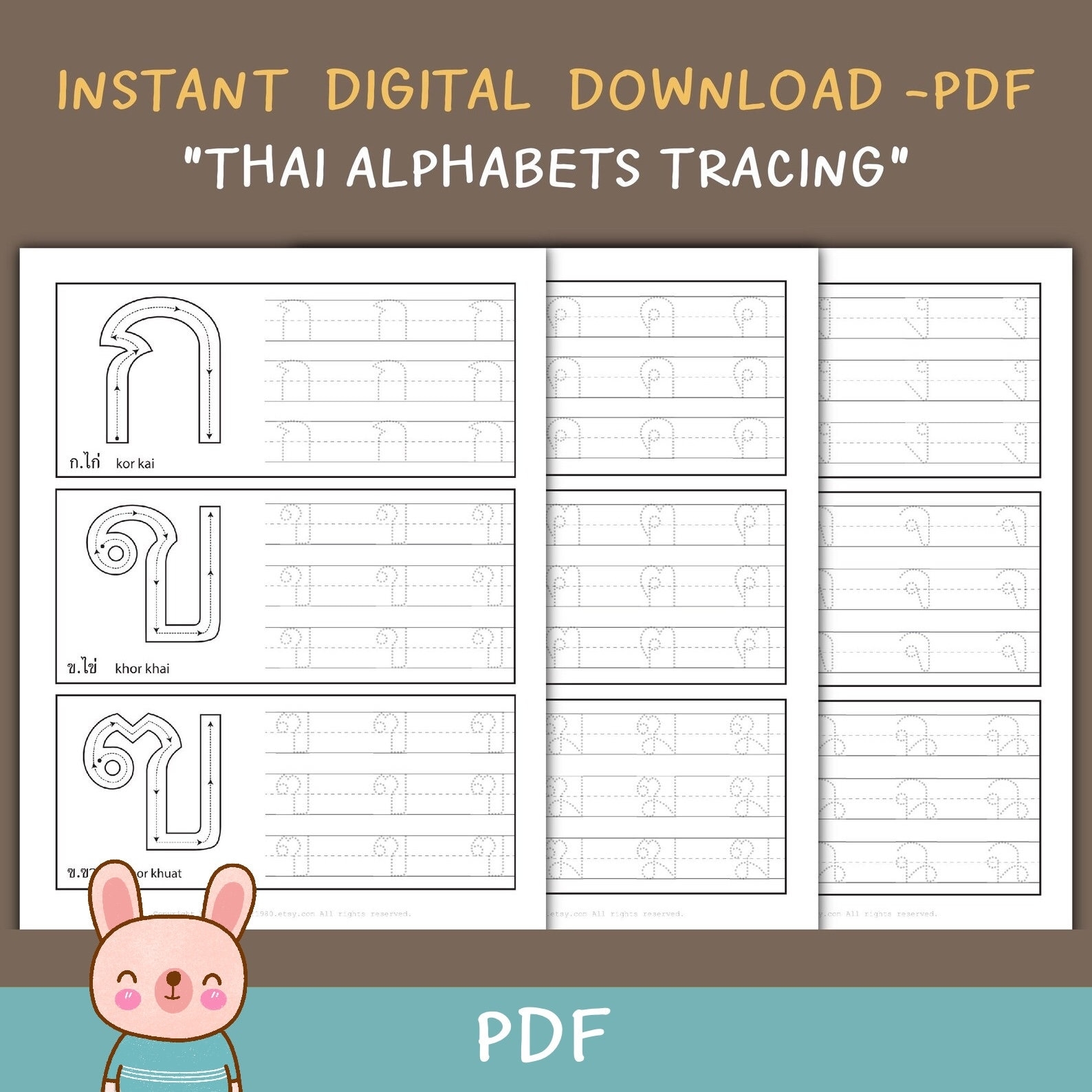 Thai Alphabets Letters Tracing Worksheet Learning Thai Printable PDF Instant Download By Kawaiiart1980 Etsy Hong Kong