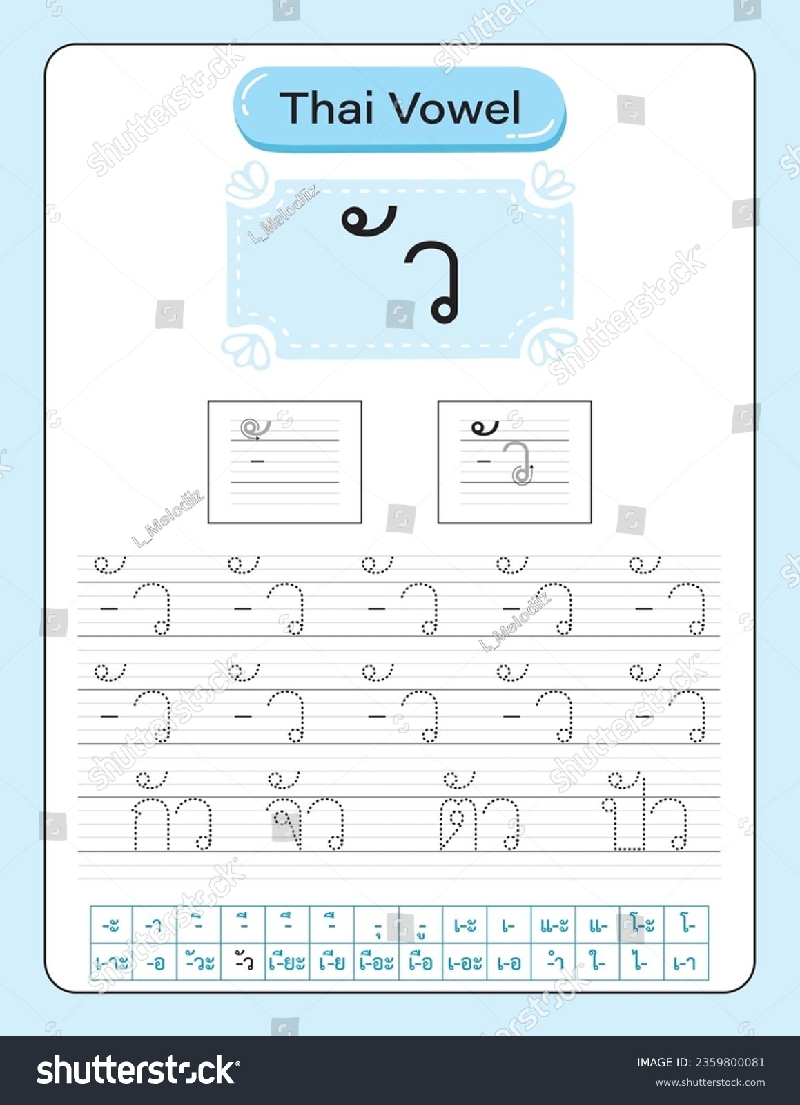 Vector Worksheet Tracing Thai Alphabet Vowel Stock Vector Royalty Free 2359800081 Shutterstock