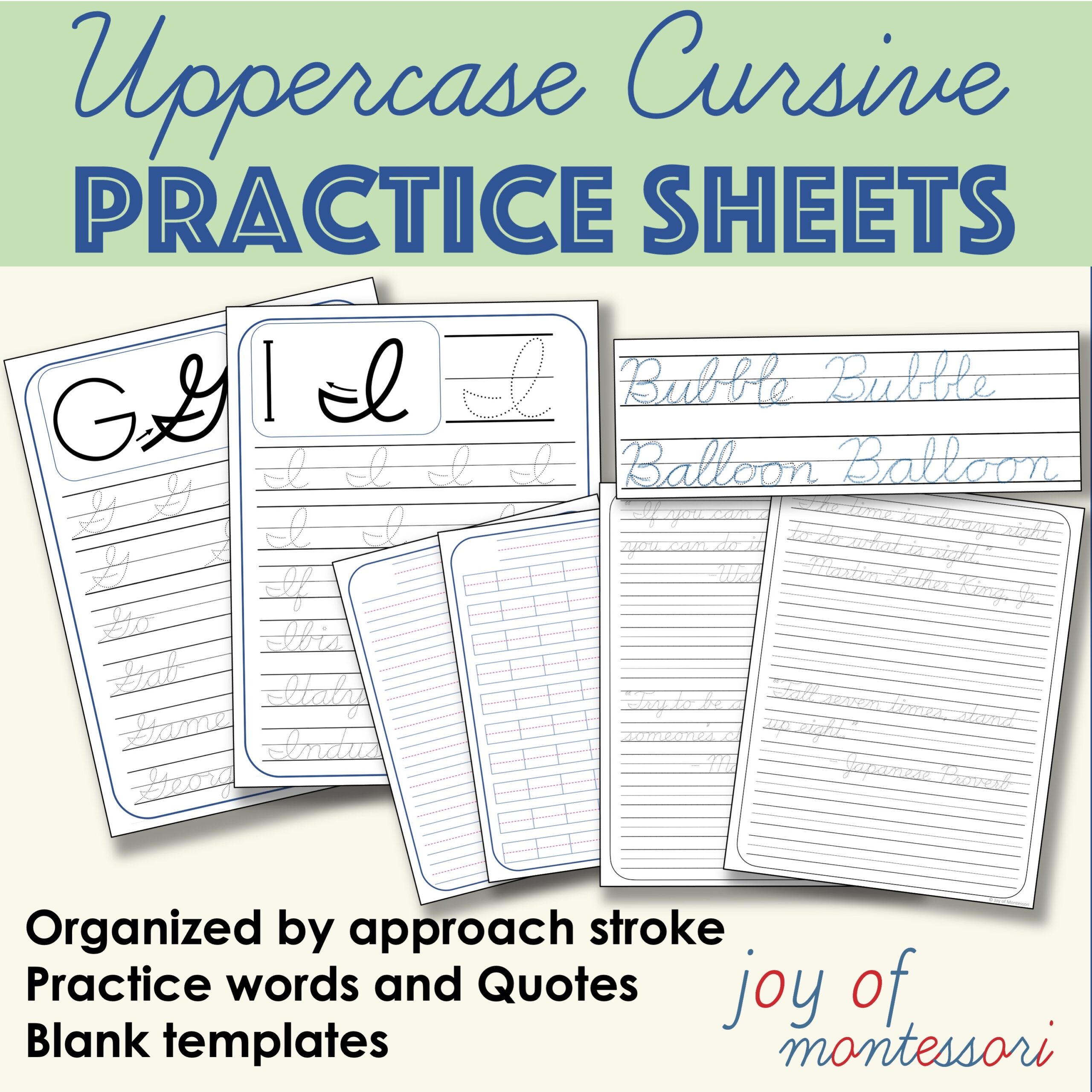 Uppercase Cursive Writing Practice Sheets Joy Of Montessori