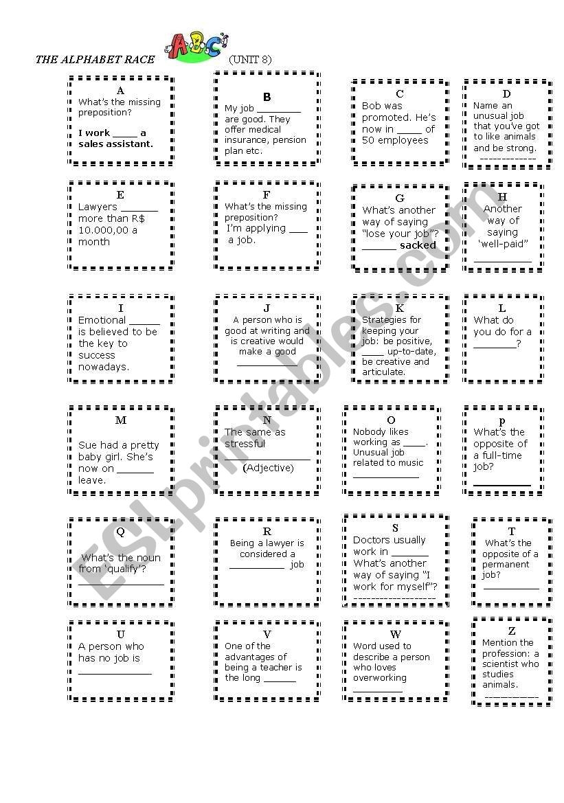 Tha Alphabet Race Job Vocabulary Game ESL Worksheet By Reggie